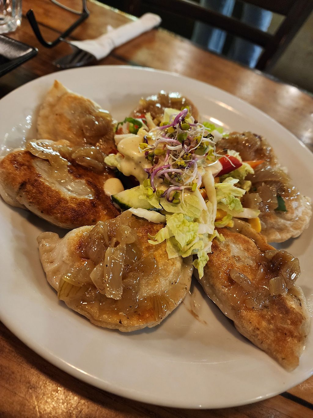 TheyWe've been here twice so far and have loved everything we've tried. They have many pierogi options, and you can mix and match (as well as choose boiled, pan-fried, or baked). We tried boiled and pan-fried, and the mushroom with cabbage was our favorite (but all were good). We also tried the cudaki (so flavorful), the fried oyster mushrooms (great dipping sauces), s banana pie, and tiramisu. Definitely try the tiramisu!