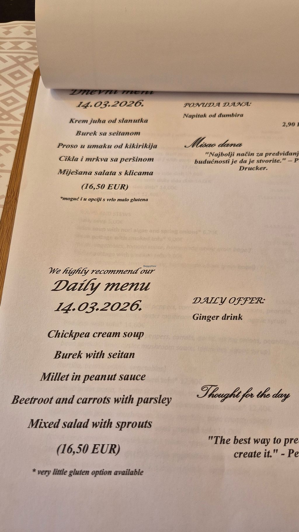 This is a vegan gem in Zagreb. We loved the daily menu that included a soup, a main dish, and a salad. Everything is healthy, well-balanced, and nutritious. The prices are much better than in other places in the city. Loved it. :)