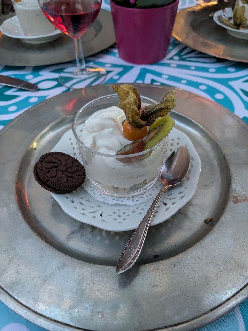 Read moreYou can choose between two, free, or four courses. I had three. The starter was a Mixed salad with vegan cheese which was both gorgeous and delicious. The main corse was mixed veggies with protein meat. It was tasty but I didn't find any vegan meat. And the portion was pretty small. For dessert I had Lemon cream with fruits which was incredibly tasty.