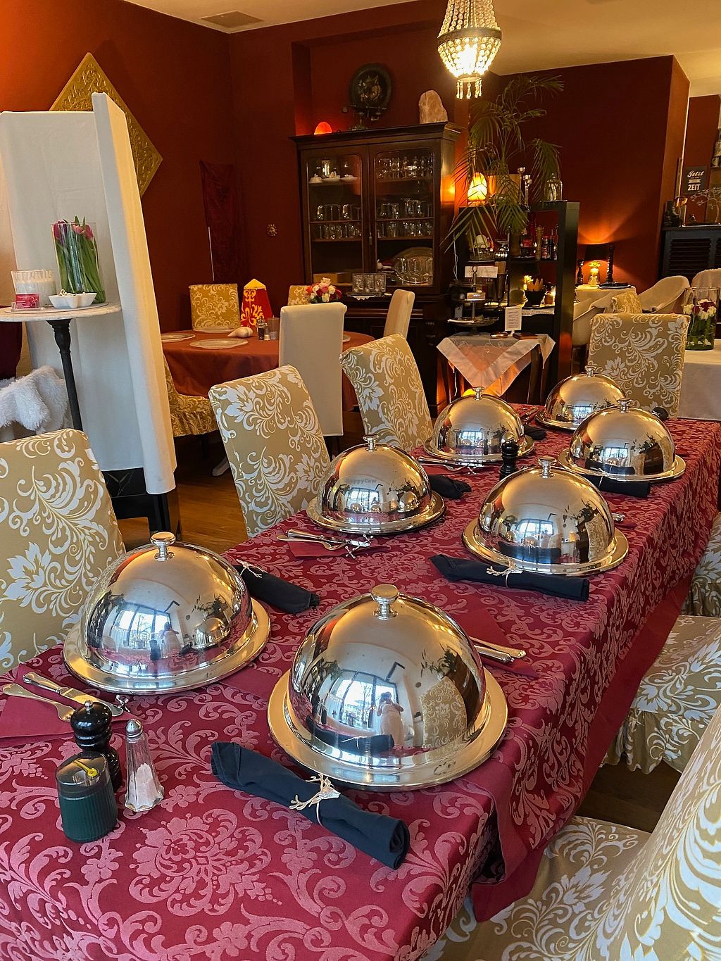 This was, hands down, the best meal I had in Germany. The setting is decorated beautifully - the mix of styles and cultures is enriching, much like the food. She served an exquisite three-course meal. I chose the beet sampler as my hors d'oeuvre. The mix of flavors and textures almost tasted like meat, but without the gamey flavor. Then I had the schnitzel. Wow! Divine! And for dessert I had the whipped cream and fresh berries with brandy and cookies. It was amazing. I wish I had known about this place sooner. I would have eaten every dinner here while I was in Munich. And this place is way underpriced. Be sure to leave a good tip for the chef and her wait staff. They deserve it! Hats off to the chef!