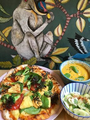 Looks great and tastes even better. Short creative menu. No so obvious mix of tastes. Very funny mural/ graffiti - a real vege ape.