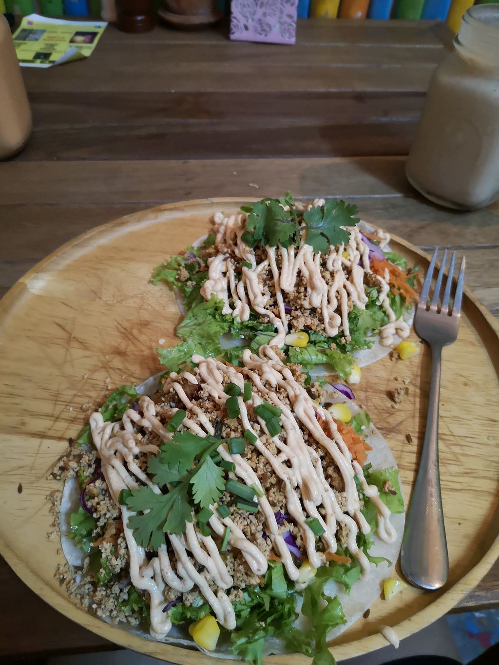 It's a totally vegan place. The food is super tasty. Very fast service. Nice atmosphere. We ate there a few times during our stay at Ko Tao. Definitely coming back when we visit again😄