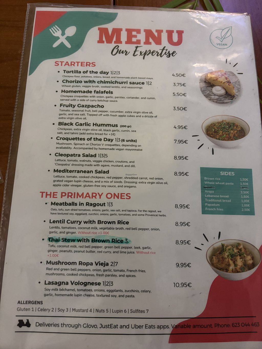 Las Palmas doesn’t seem to be the most vegan friendly place on earth, so we were excited to find this cool little place that serves 100% procent plant-based food. Vegetopia is officially a takeaway restaurant, so there’s no restroom, but they do have four small tables where you can sit and eat. The menu is varied, healthy and affordable. Nothing fancy, just a pleasant five star experience.