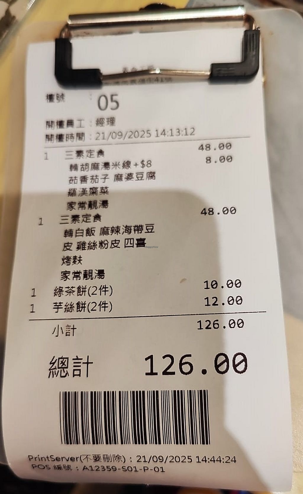 Happy to have found this place! Narrow but bright, clean interior space with bilingual menus: mostly vegan, with ovo-lacto options clearly marked. QR code ordering, cash or octopus payments accepted.