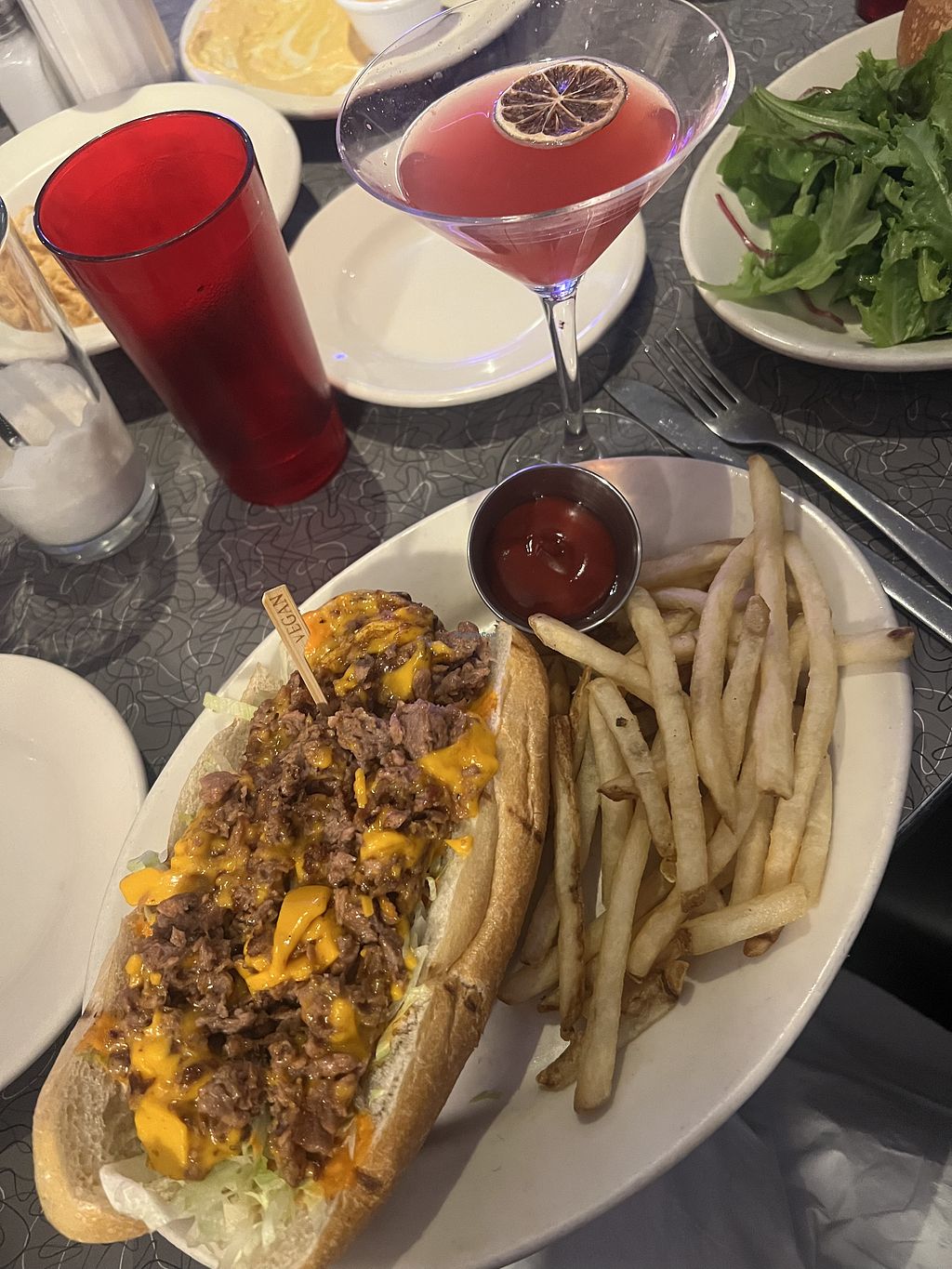 So many options here! I enjoy the beyond steak and cheese. Their cosmo is actually really good too! Chicken broccoli alfredo a bit on the bland side sadly!