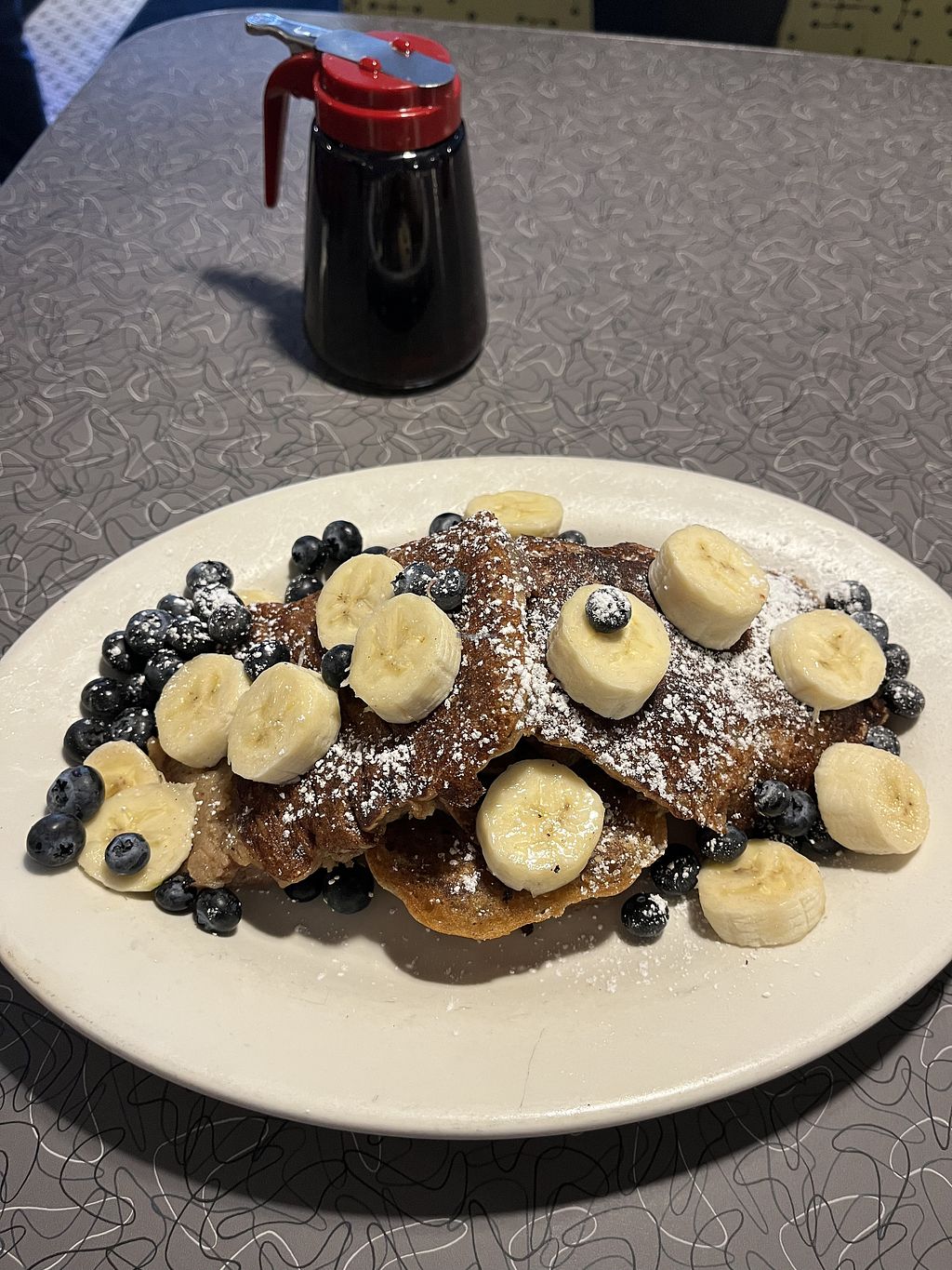 Great location, old school typical american diner style, love it! The menu is huge and it was sooo hard to choose. Actually everything could be made vegan but I kept it simple and ordered one of the already labeled vegan dishes: The banana bread french toast 🍌🍞