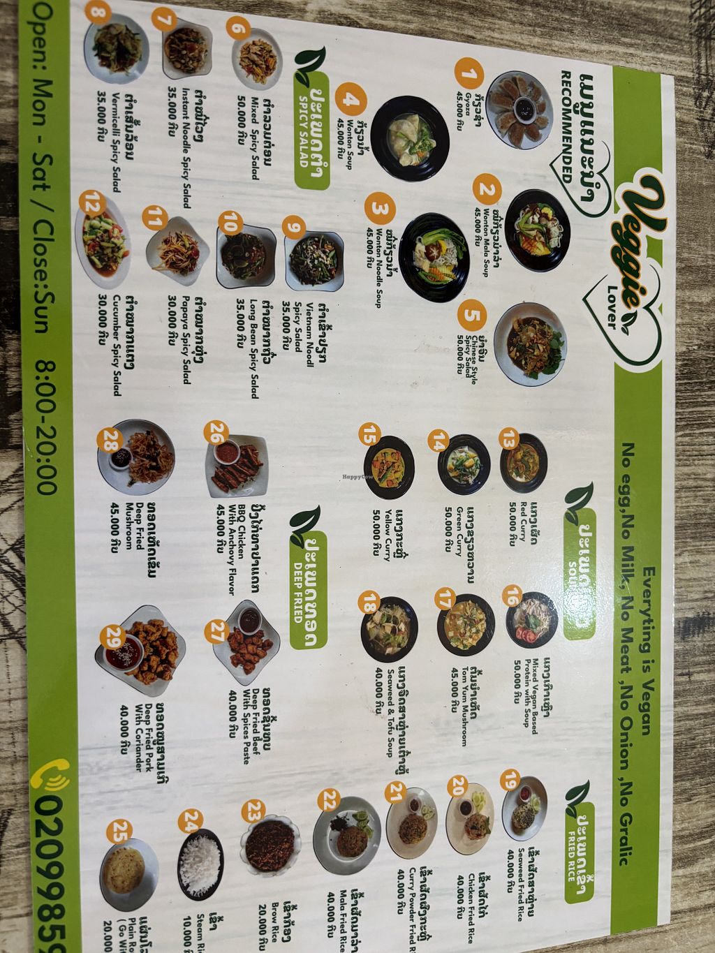 Vegan cafe in the central area but away from the busy streets. Serves a mix of Laotian and southeast Asian cuisines including pan-fried dumplings, fried noodles, fried rice, papaya salad, pad thai, and savory pancakes. Est. 2020. Open Mon-Sat 8:00am-8:00pm. Closed Sun.
