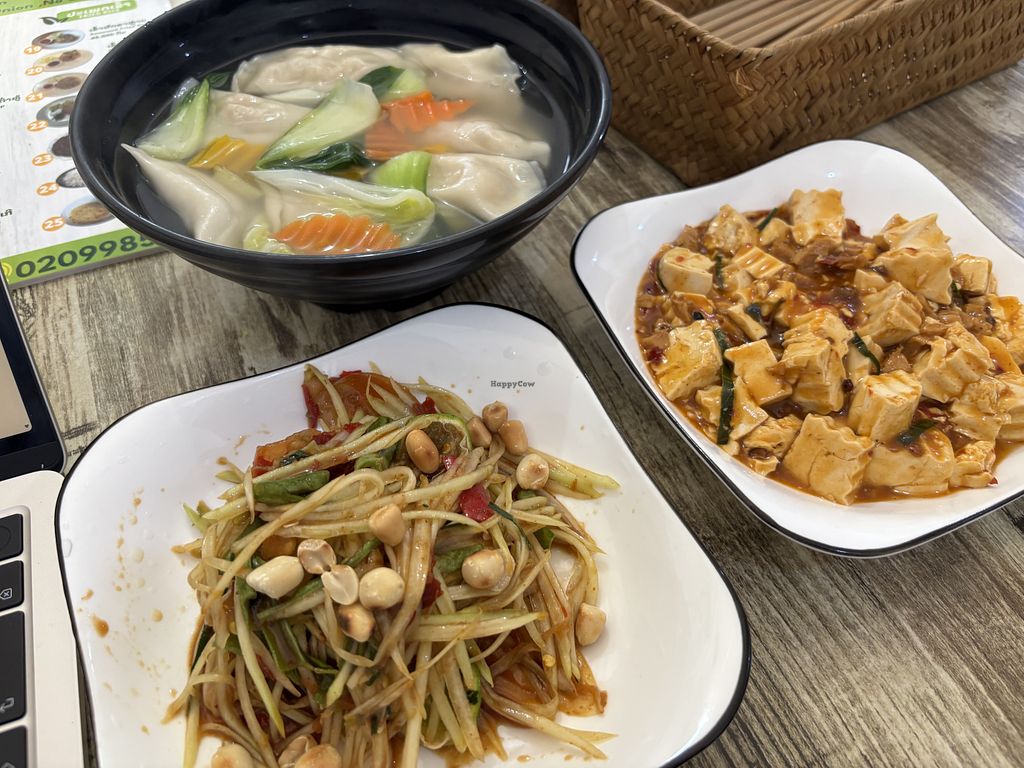Read moreThey have fake meats, I had the gyoza, spicy bean salad which was really good and yellow curry chicken. Very good price value for all the food we had, I would say is the cheapest vegan place we found in Laos. Staff was very nice and helpful