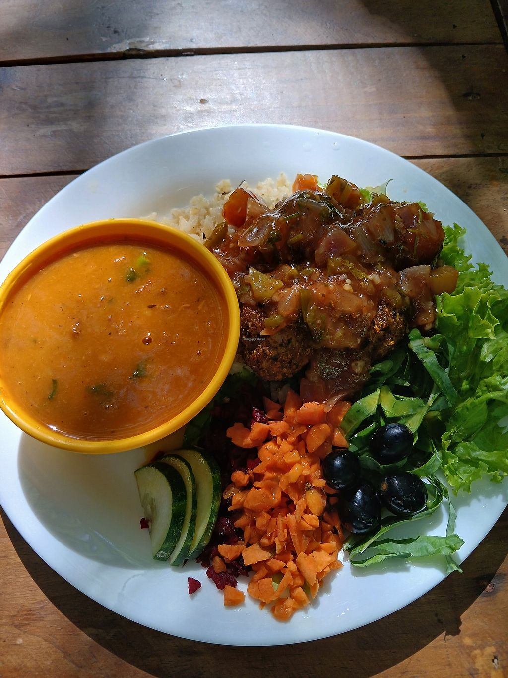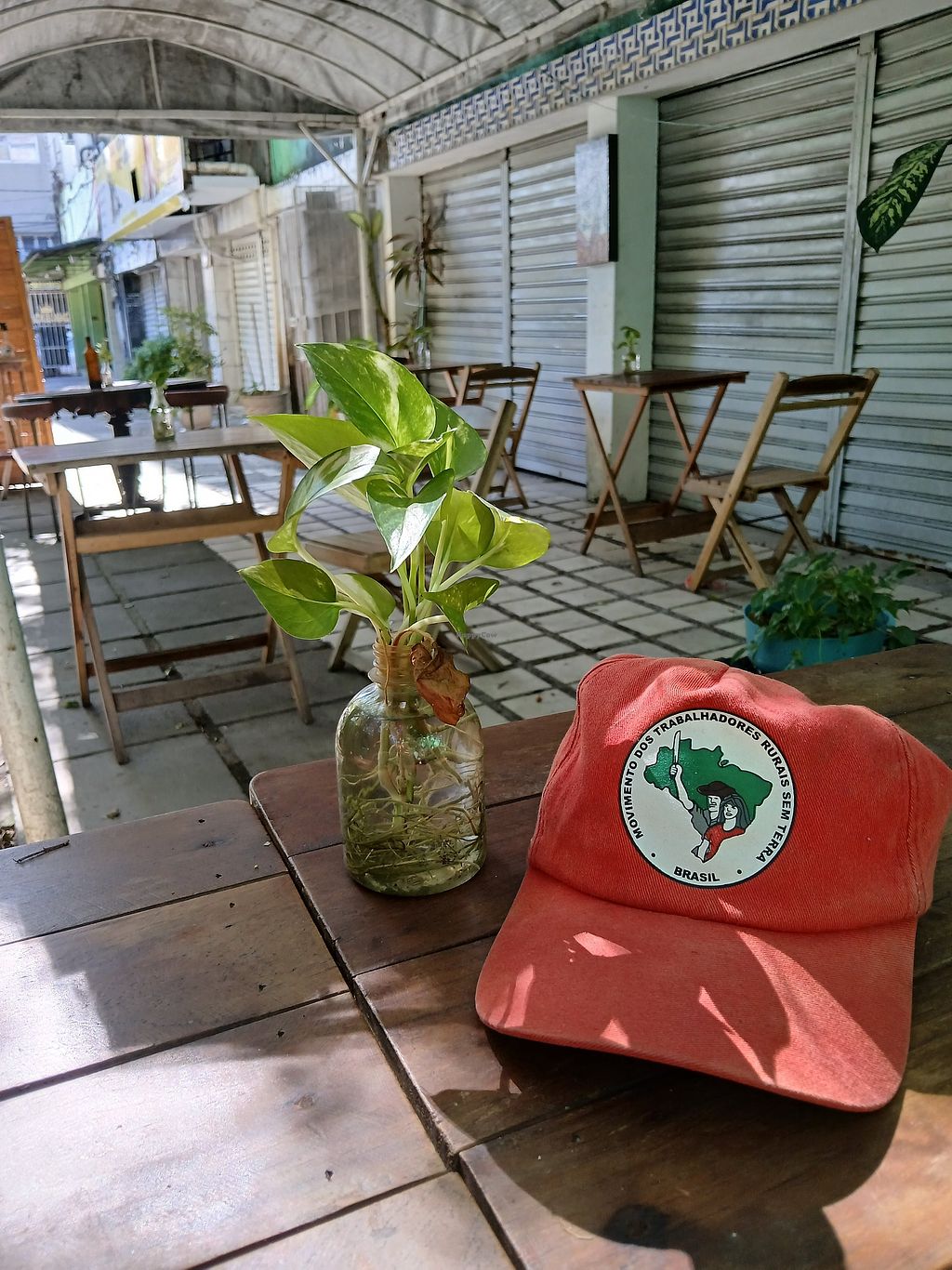 Located in a little courtyard off the main road. Easy walking distance from the port of Recife. There was a choice of three main meals with a lot of add-ons. I had the sertanejo, a soy-burger/steak with a lot of salad, rice and beans which tasted very good. Couldn't resist the deserts, chose two the were both delicious.