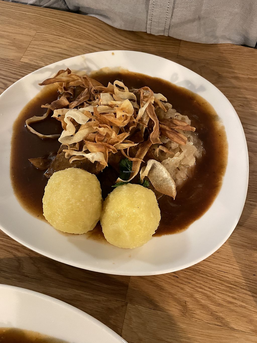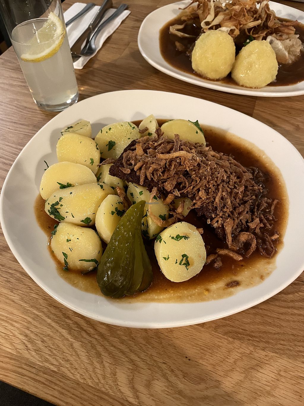 Left: „Zwiebelrostbraten“, bottom „Vegane Gansl"