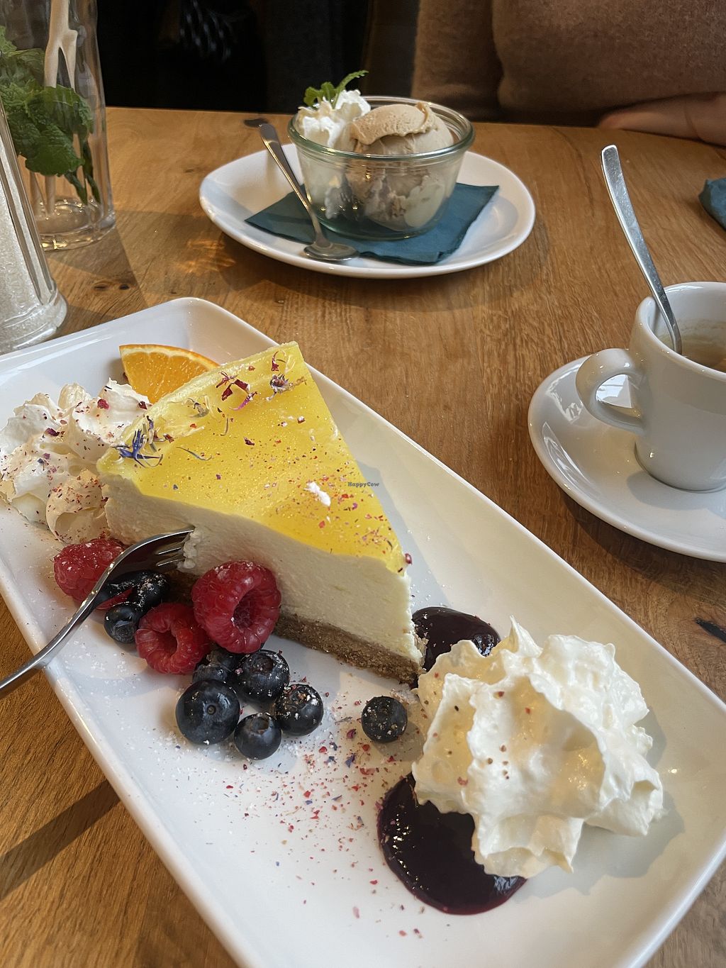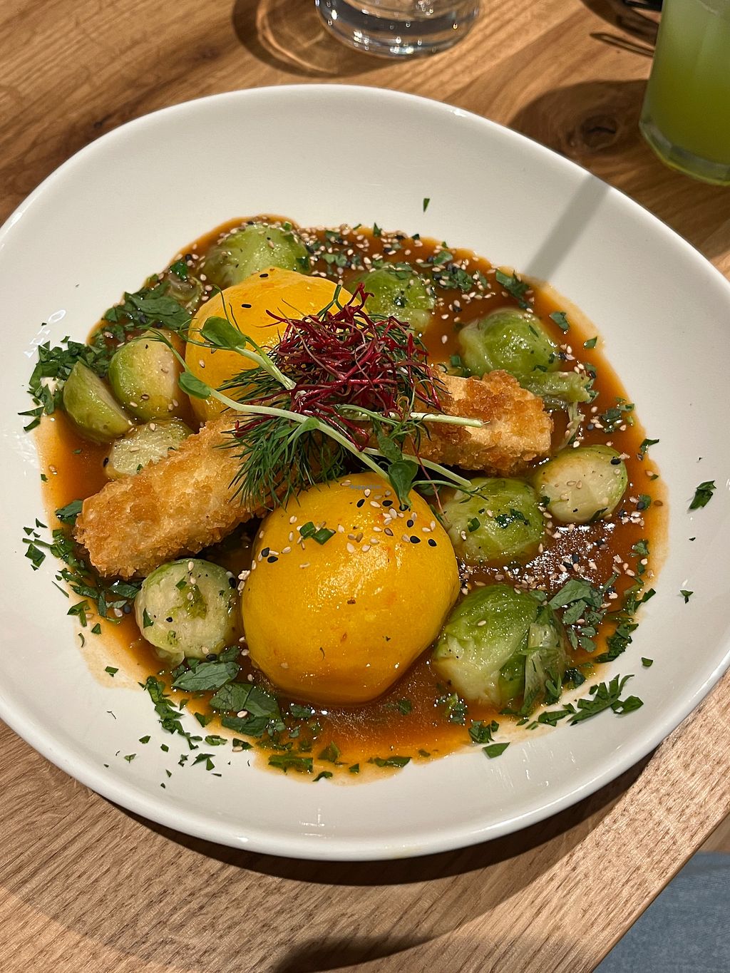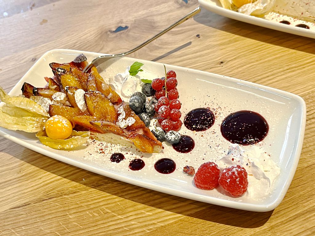 Really good food. Many flavours and structures but still very eatable. Looks festive on the plates and tastes just like that. It’s a gift to eat here. I spent 108 euros on 3 mains, 2 desserts and 6 fresh made drinks (Apfel Minz and Velo Sunrise).