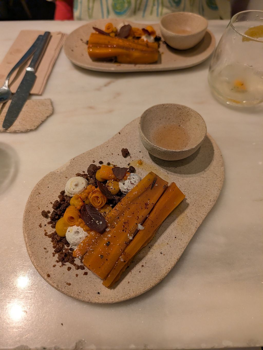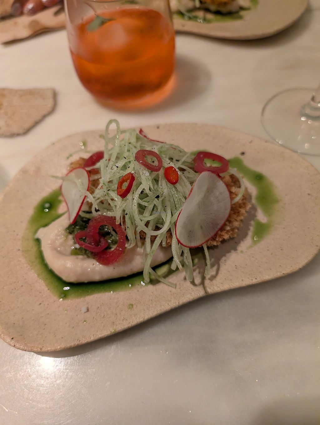 Honestly-we weree expecting so much better food and were very much disappointed. The service was very friendly and nice and the dishes looked well, but being a fan of god food and fine dining, we could not eat most of the dishes as there was no balance in the composing…. too much vinegar, too much bread, too spicy and (that‘s my personal view) I had a problem with some consistances…. Nevertheless, the wine was great. I am sorry, I wish I could give a better resumé….