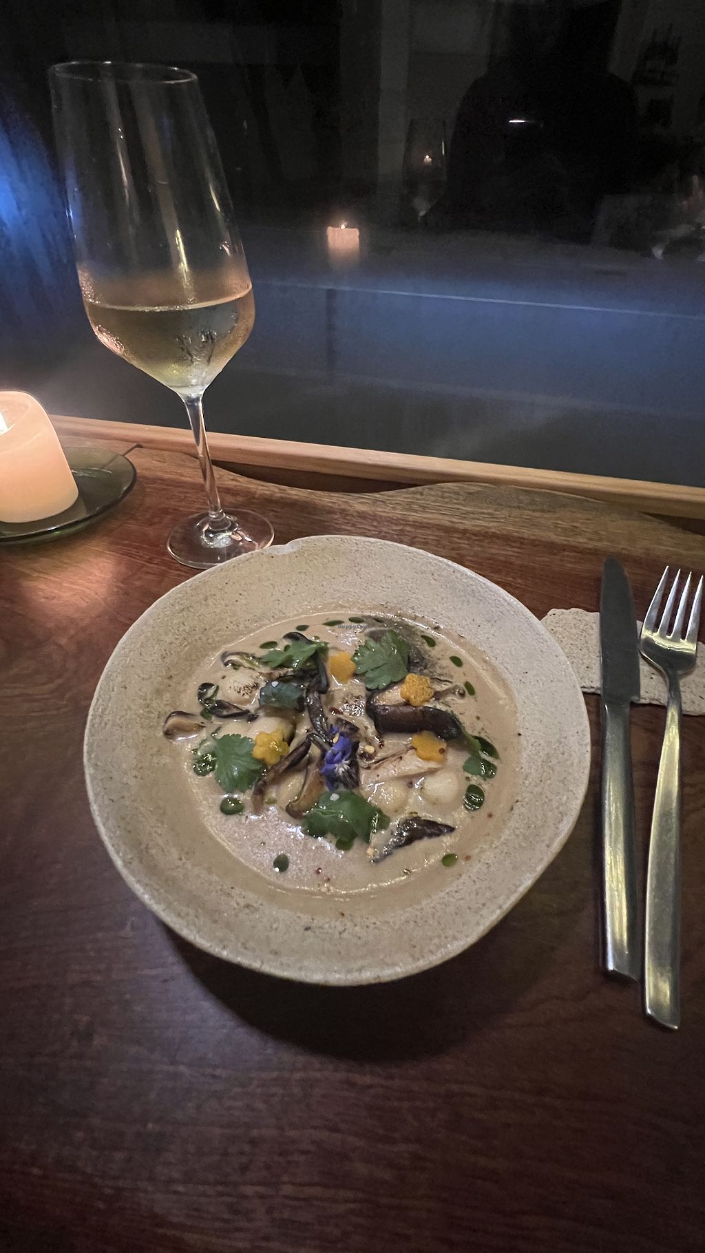 We chose the 6 course (winter) set menu. We were taken on a culinary journey of inventive, unique, and incredibly well balanced dishes. This is some of the finest vegan food we have eaten (and we love to visit the fanciest vegan restaurants we can find). The atmosphere was incredibly relaxed, and pleasantly casual. All of the staff were charming, and really tried their hardest to ensure we enjoyed our experience, and informed us in detail how each dish was composed. We also enjoyed the Kombucha's on offer. My only complaint (to the disagreement of my girlfriend) is that each dish could have been ever so slightly bigger (and I mean literally like, 10% - 15% larger) - I absolutely was satisfied, I just enjoyed it all so much it would have been great if each course had a mouthful more!