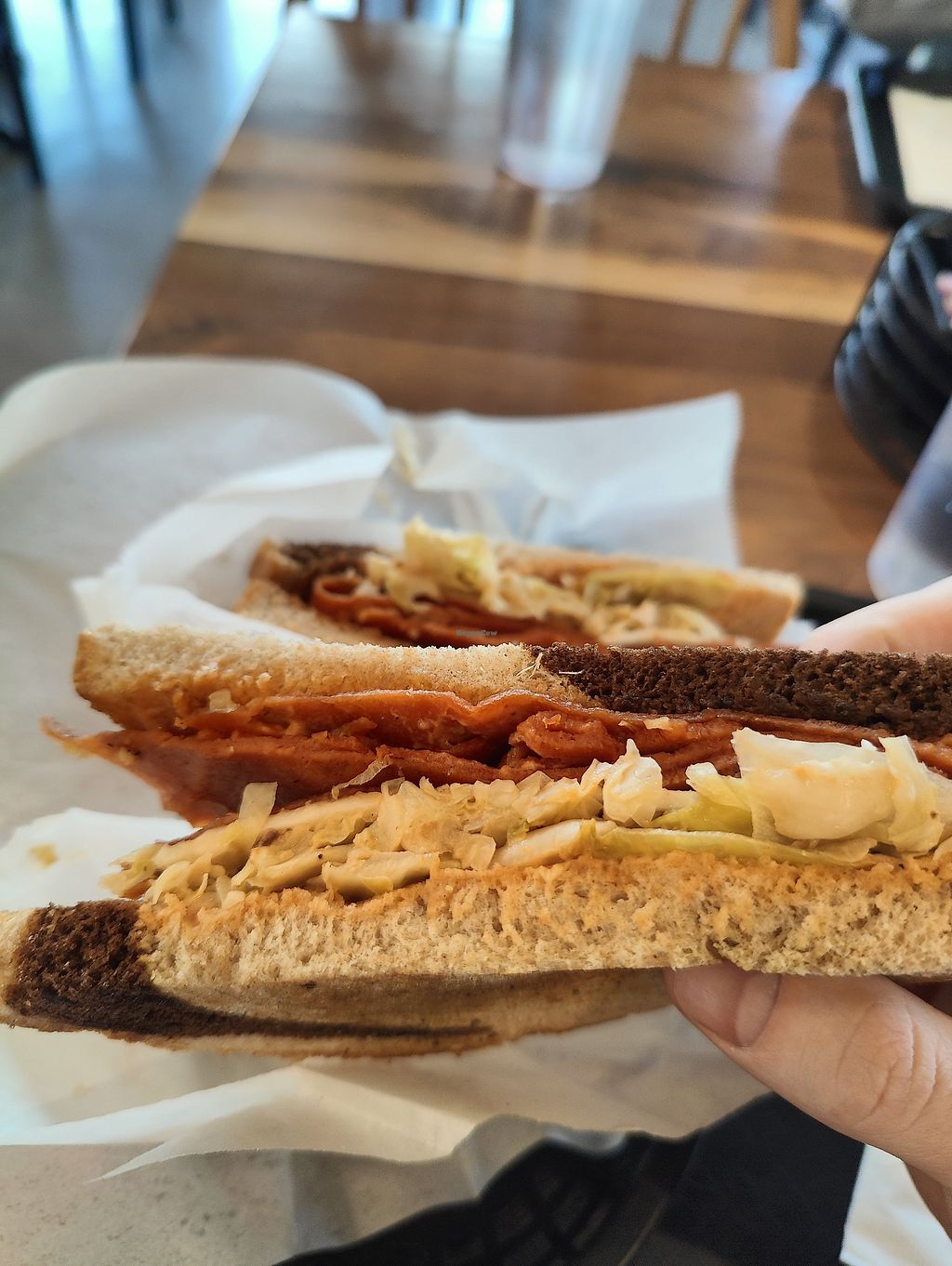 Counter service was… weird. 2 gals were at the counter taking my family’s order and they were bickering unprofessionally. Ordered the pastrami sandwich, kale salad, the cubano, orange bowl, chicken parm, fries, a cowboy cookie and 2 brownies. They quickly delivered my pastrami sandwich, which I politely waited for the rest of the food to be served to my family members before eating. It took them 12 additional minutes. My sandwhich was no longer warm, had no pickles, and was a single slice of “meat” between rye bread a bit of kraut… it was sad. The chicken parm was served cold as well as the fries. The orange bowl, cubano and cowboy cookie were solid. The brownies were oily. The kale salad wasn’t anything to write home about. I won’t be back until they figure out how to make quality food and give good customer service.