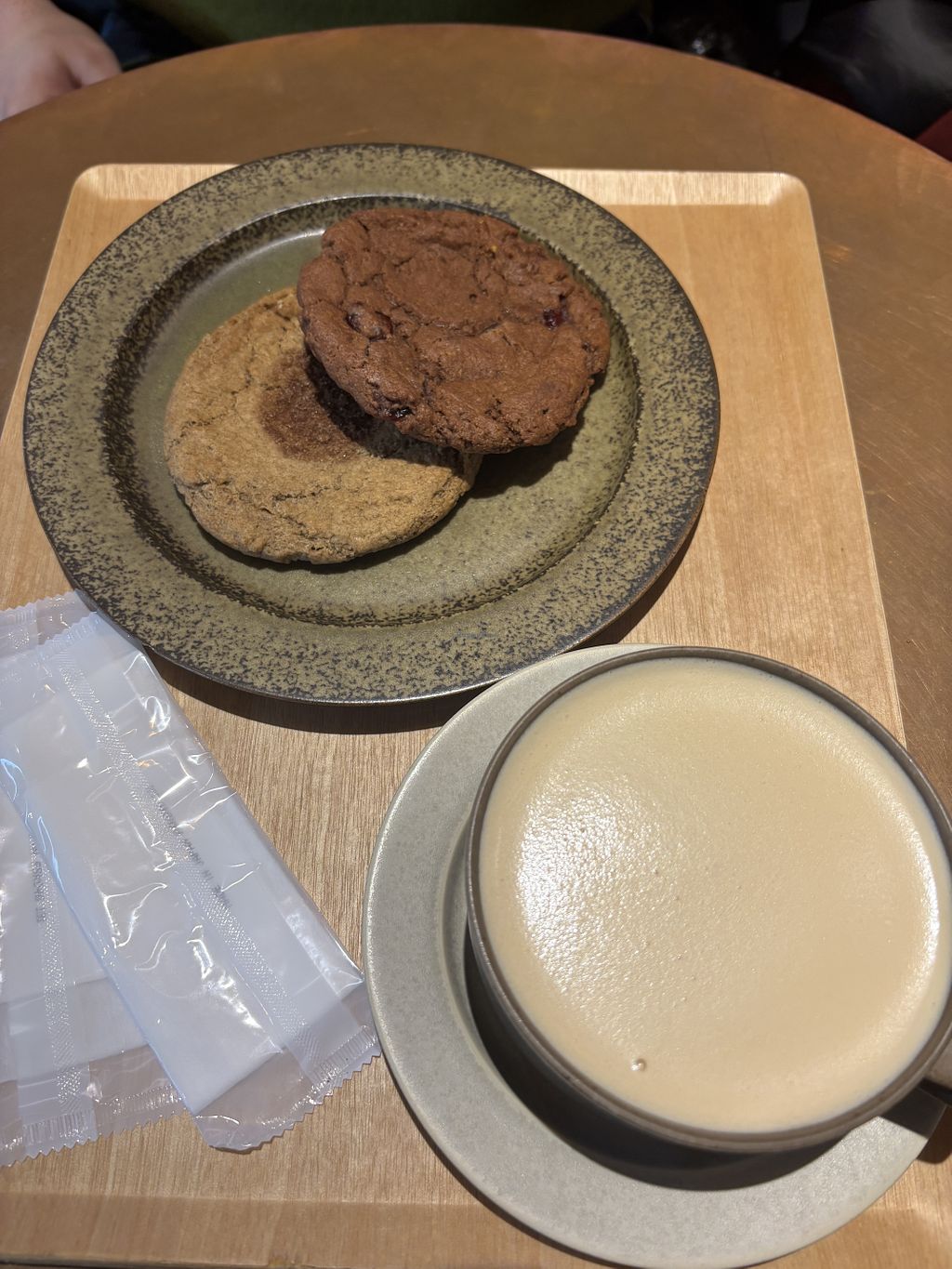 Nice matcha cookie and good coffee. They had 4 cookie options, but were out of sandwich.