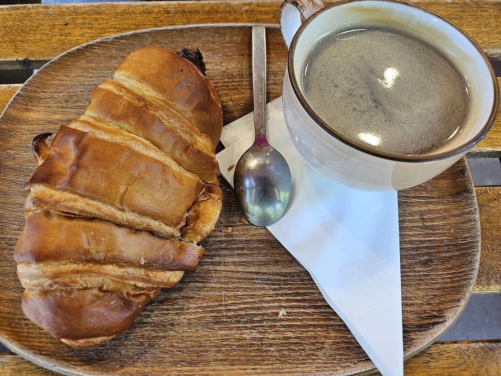 A baba (aperol spritz), a chocolate éclair, and coffees. Simply amazin…