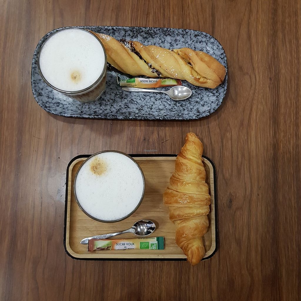 Assortiment of croissant, pain au chocolat, chausson aux pommes and ch…