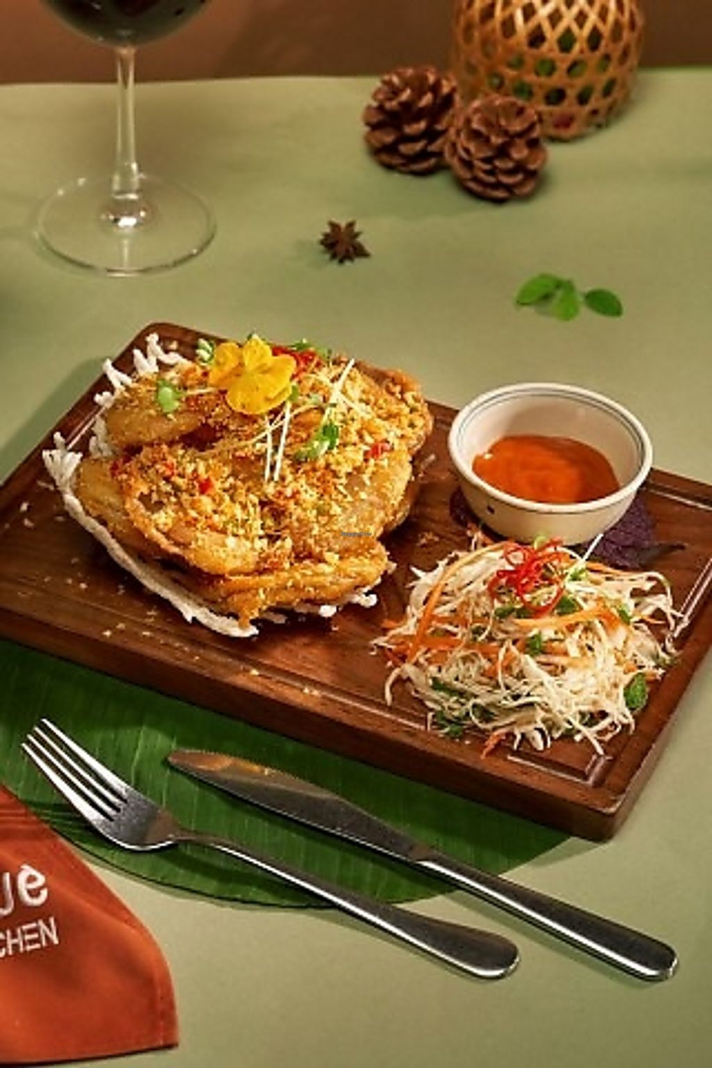 Crispy tofu with coriander sauce. The sauce was great, the tofu was ve…