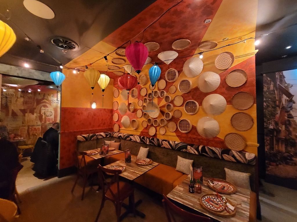 Serves meat, vegan options available. Vietnamese restaurant with a separate vegan menu. Choices include spring rolls, pho, "not wings", bowls, and chocolate brownie. Open Mon-Thu 12:00-21:00, Fri 12:00-21:30, Sat 12:00-22:30, Sun 12:00-20:30.