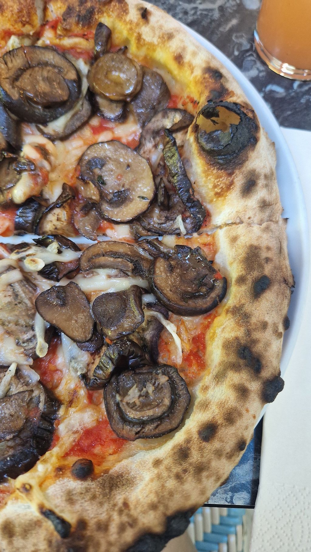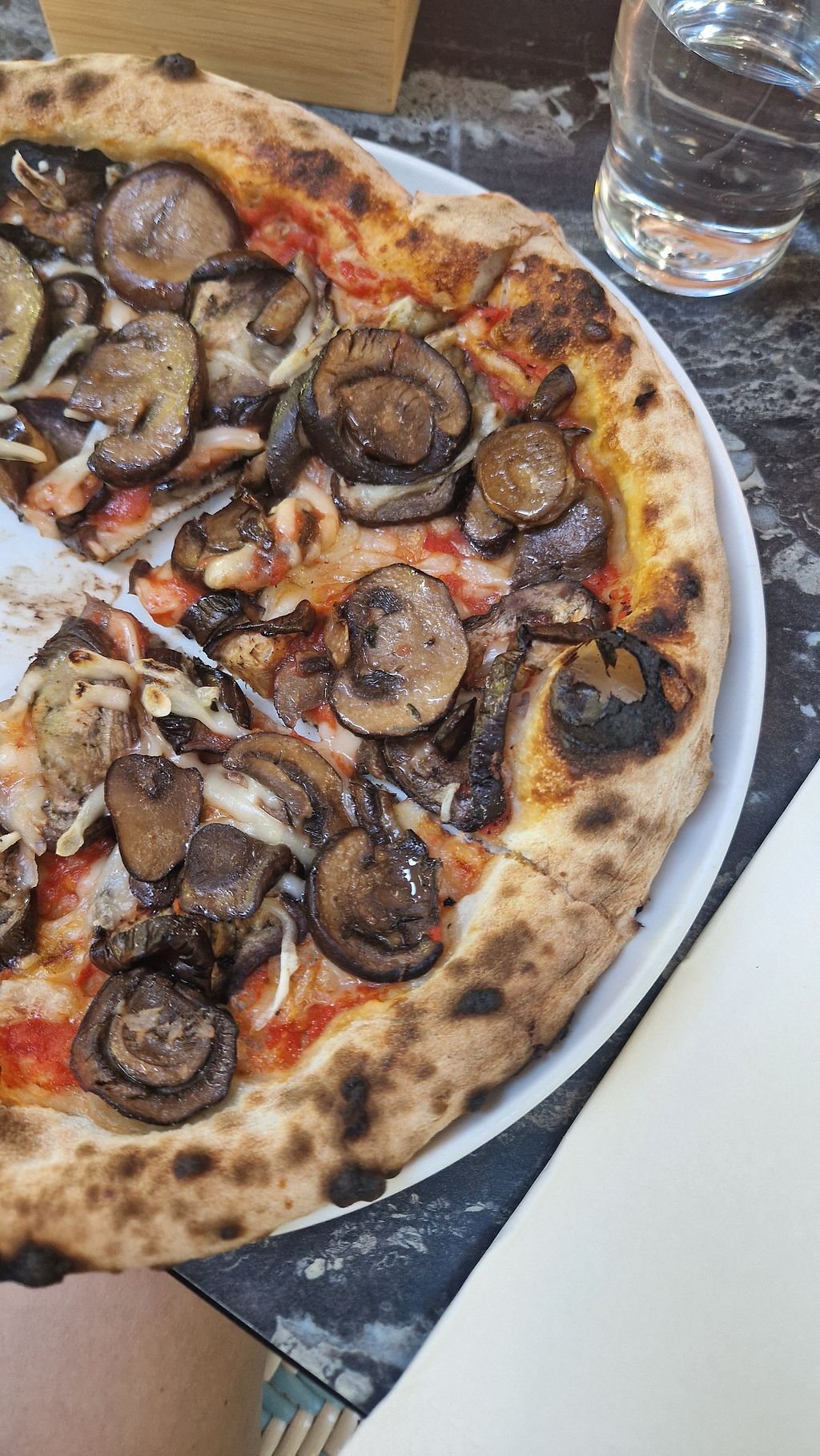 Had a pizza with aubergine, mushroom and vegan cheese. The pizza was really tasty