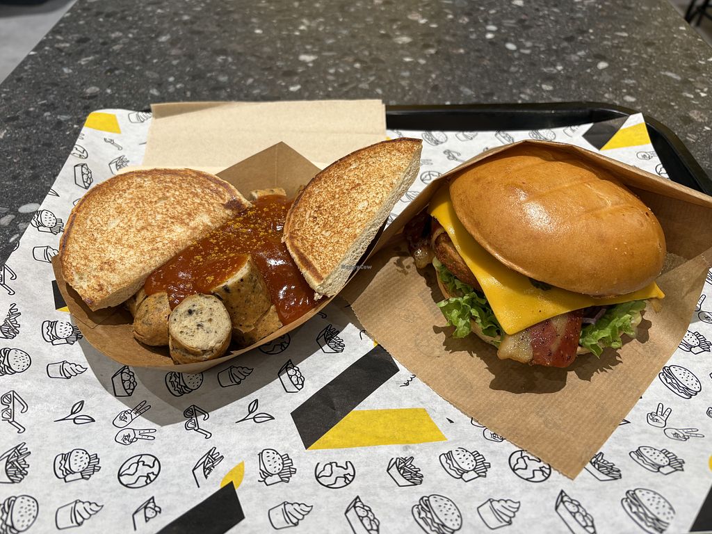 Tasty vegan burgers, though i prefer the vegan beef over the vegan chicken after tasting both. Both their vegan cheese and bacon are always worth it.