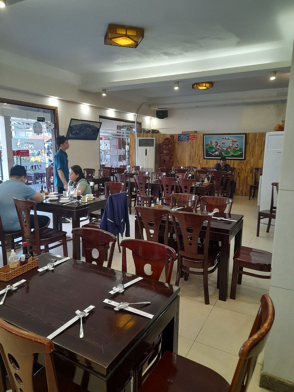 A large vegetarian restaurant with two buildings on opposite sides of the road, inside and outside of the Pagoda campus walls. Large a-la-carte menu. Buffet lunches on the first and the fifteenth days of Lunar month. Friendly atmosphere.