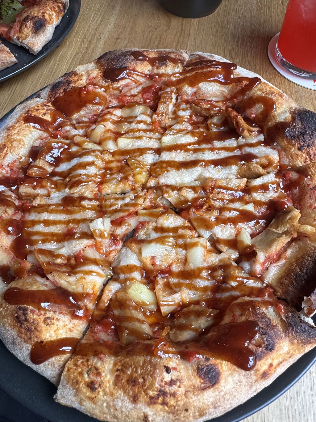 Now to the pizza itself - pure art. The crust was the perfect balance of crispy and fluffy, the pineapple tasted fresh and not canned, with a lovely caramelized note. The roasted vegan chicken paired perfectly with the creamy, house-made mozzarella and maple BBQ sauce. I was honestly in heaven every bite was perfect.