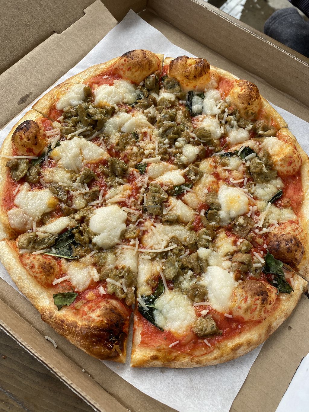 Really excellent Neapolitan style vegan pizza. The crust is perfect, their three-day ferment really gets the job done. Nut cheeses are also top notch. Highly recommend!
