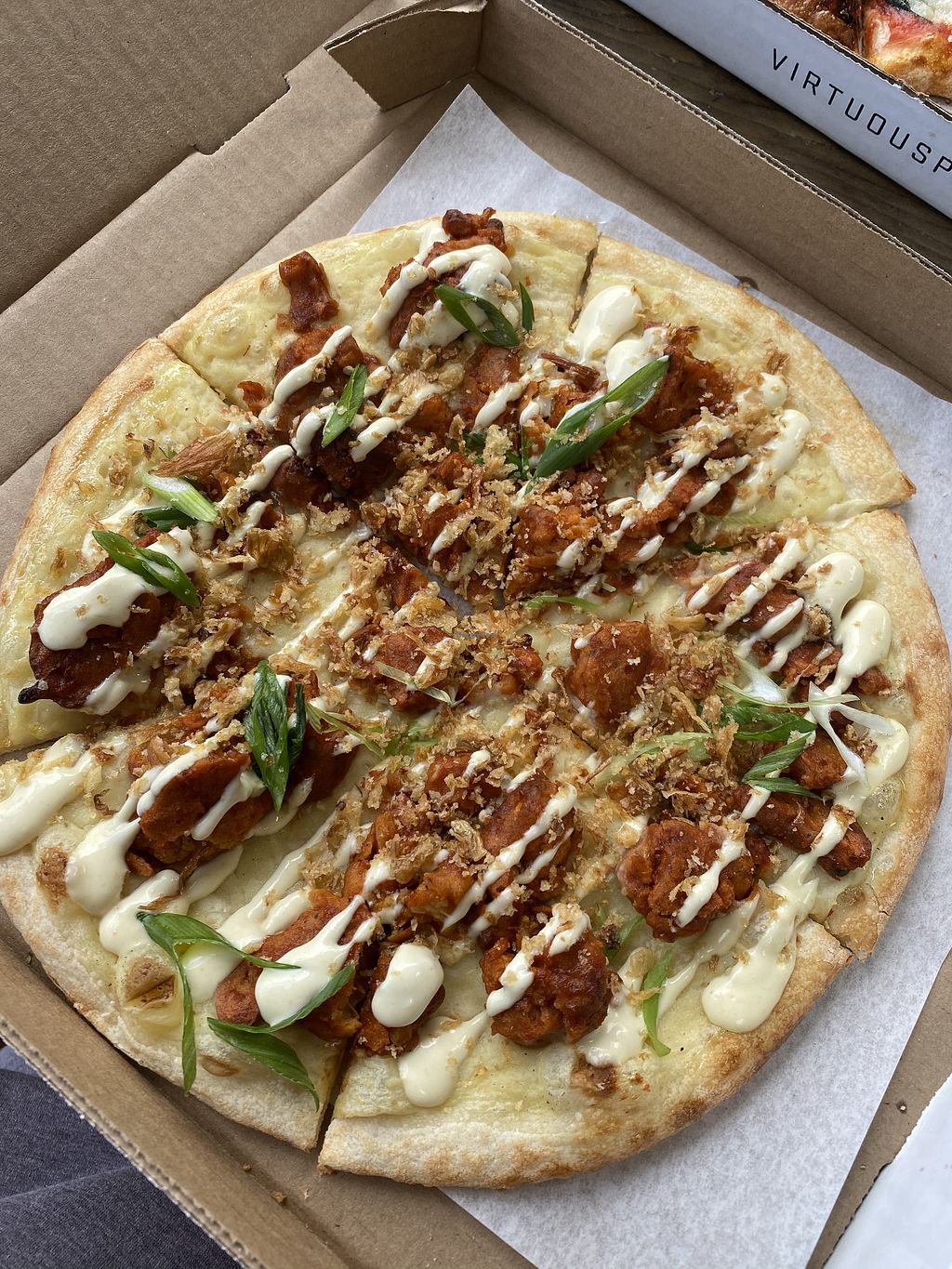 Thank you so much for giving us a try and for sharing your honest feedback! We’re thrilled to hear you enjoyed the pizza and appreciated the bold, creative flavors. We put a lot of care into crafting unique combinations that are both delicious and satisfying. We’re always working to refine what we do, so your comments about the crust are noted. We hope to welcome you back soon to try more of what we have to offer!
