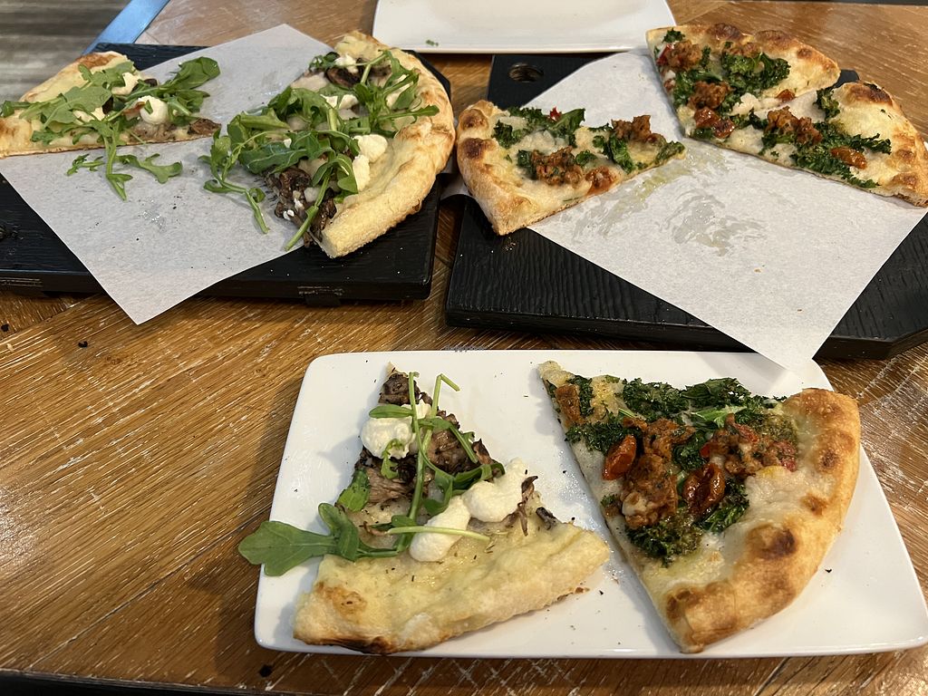 This quaint restaurant has not only delicious food but also very friendly and helpful service! Our group enjoyed the garlic knots and an arugula salad to start. The salad was perfect and so flavorful! We tried 4 different pizzas and they were all amazing!! The hot honey that came on one of the pizzas is made out of apples and not from the bees!
