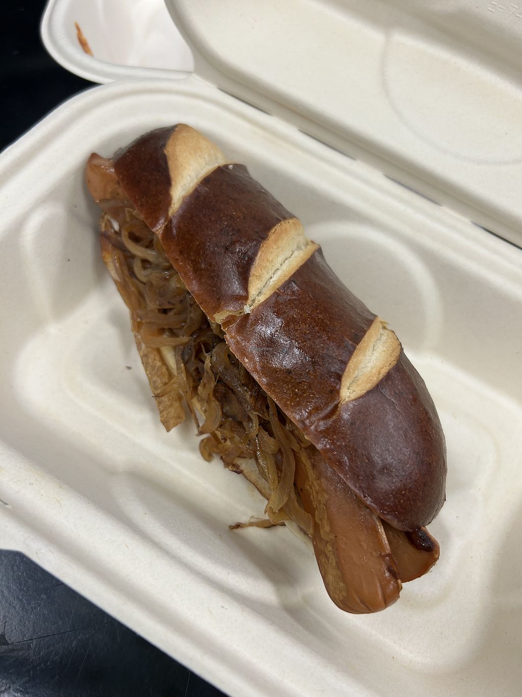 I got the veggie dog with kimchi topping, best dog ever. Also baja bowl, all the sauces come separate. But just dump them all in there. Everything vegan