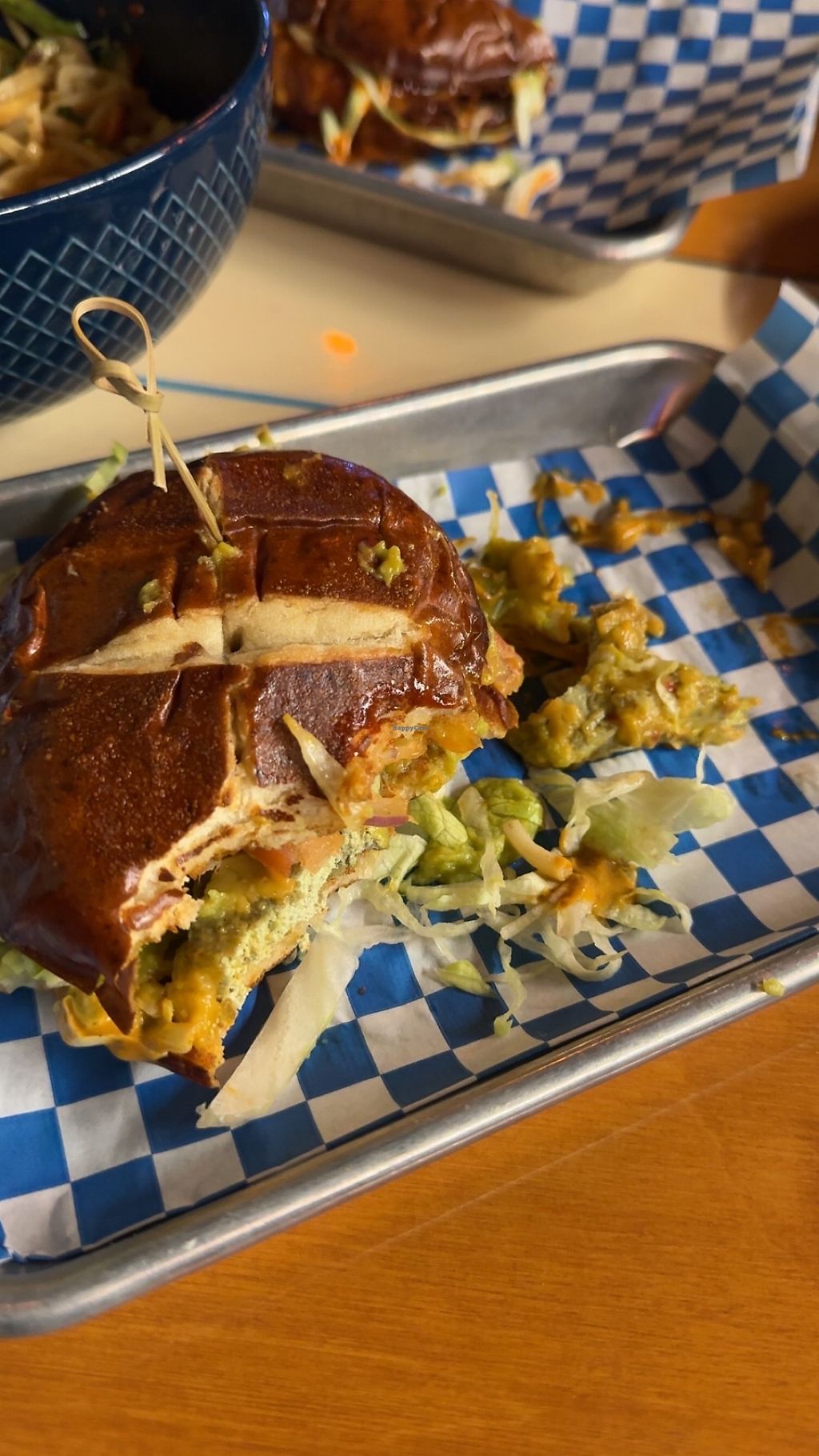 We had a vegan feast with the pretzel bites and beer cheeze, the BBQ Mac and a Bahn Mi 😋