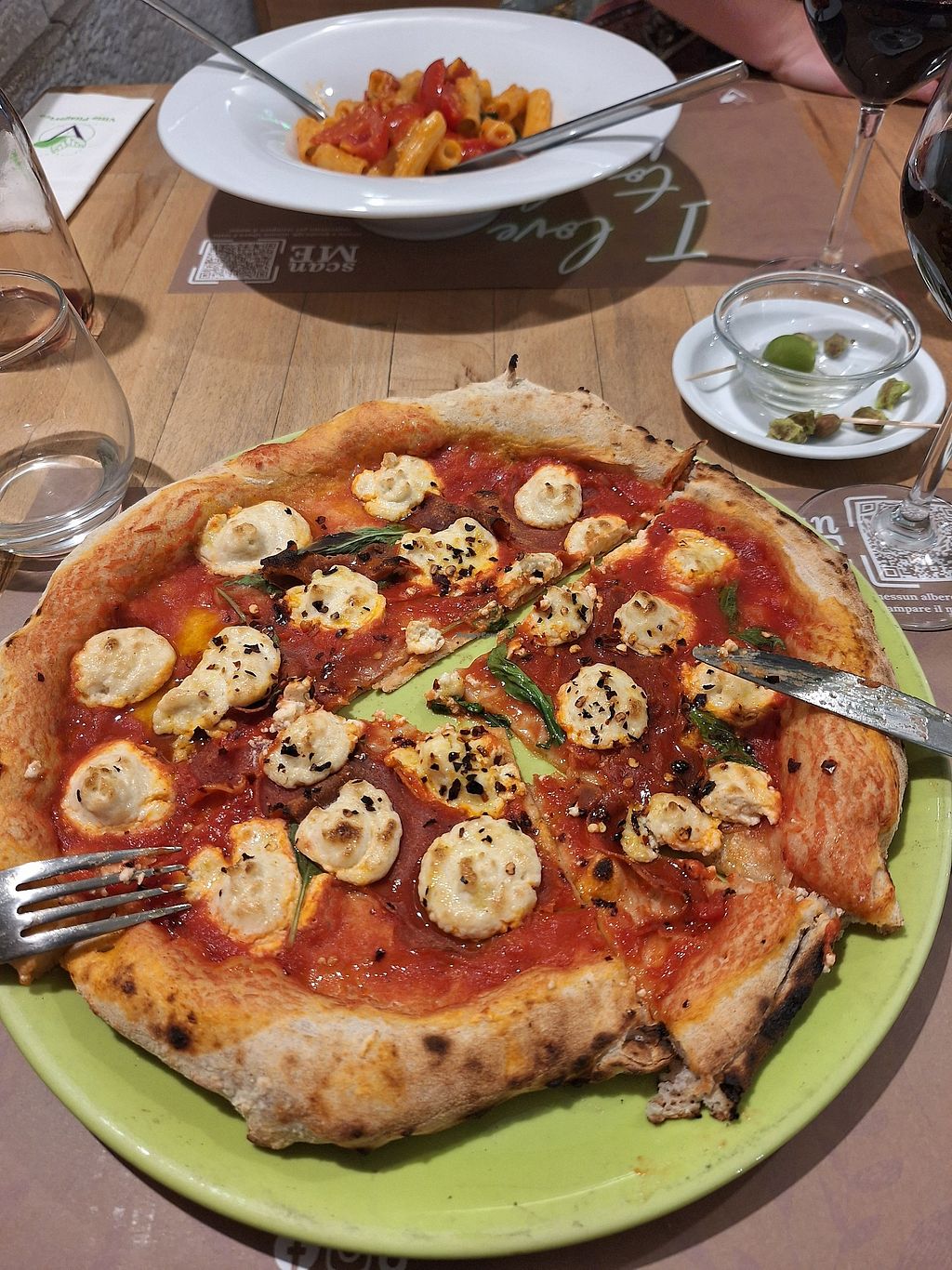 Abbiamo ordinato a pranzo delle polpette al sugo e un piatto di scarpariello (piccante, ma il cameriere aveva avvisato). Tutto buono.