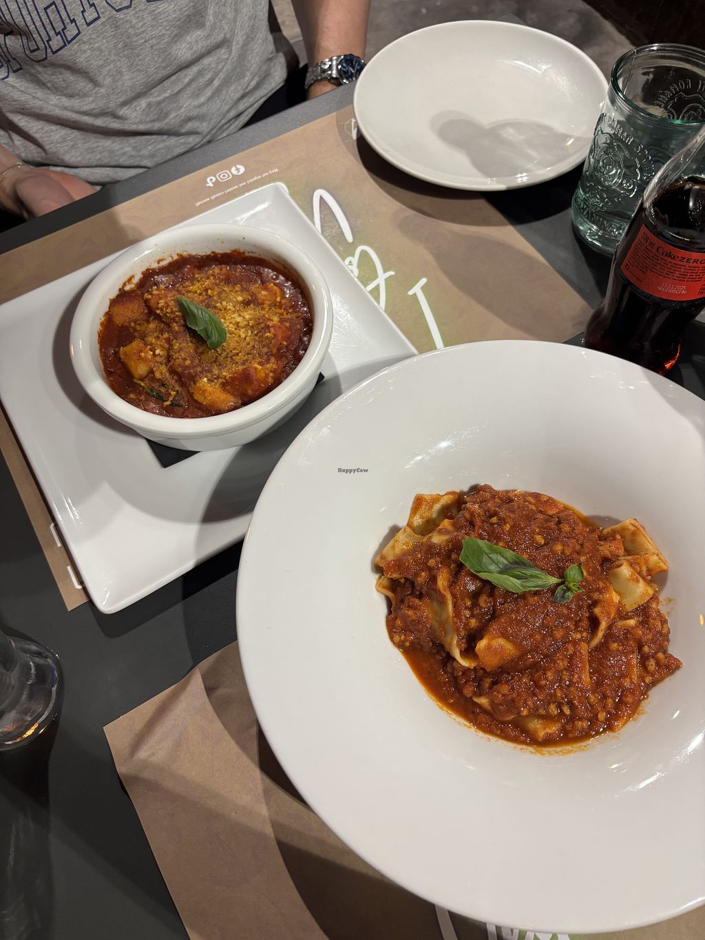 We had the tomato Gnocci and tagliatelle bolognaise (both VG) and a mushroom bread with extra VG sausage.