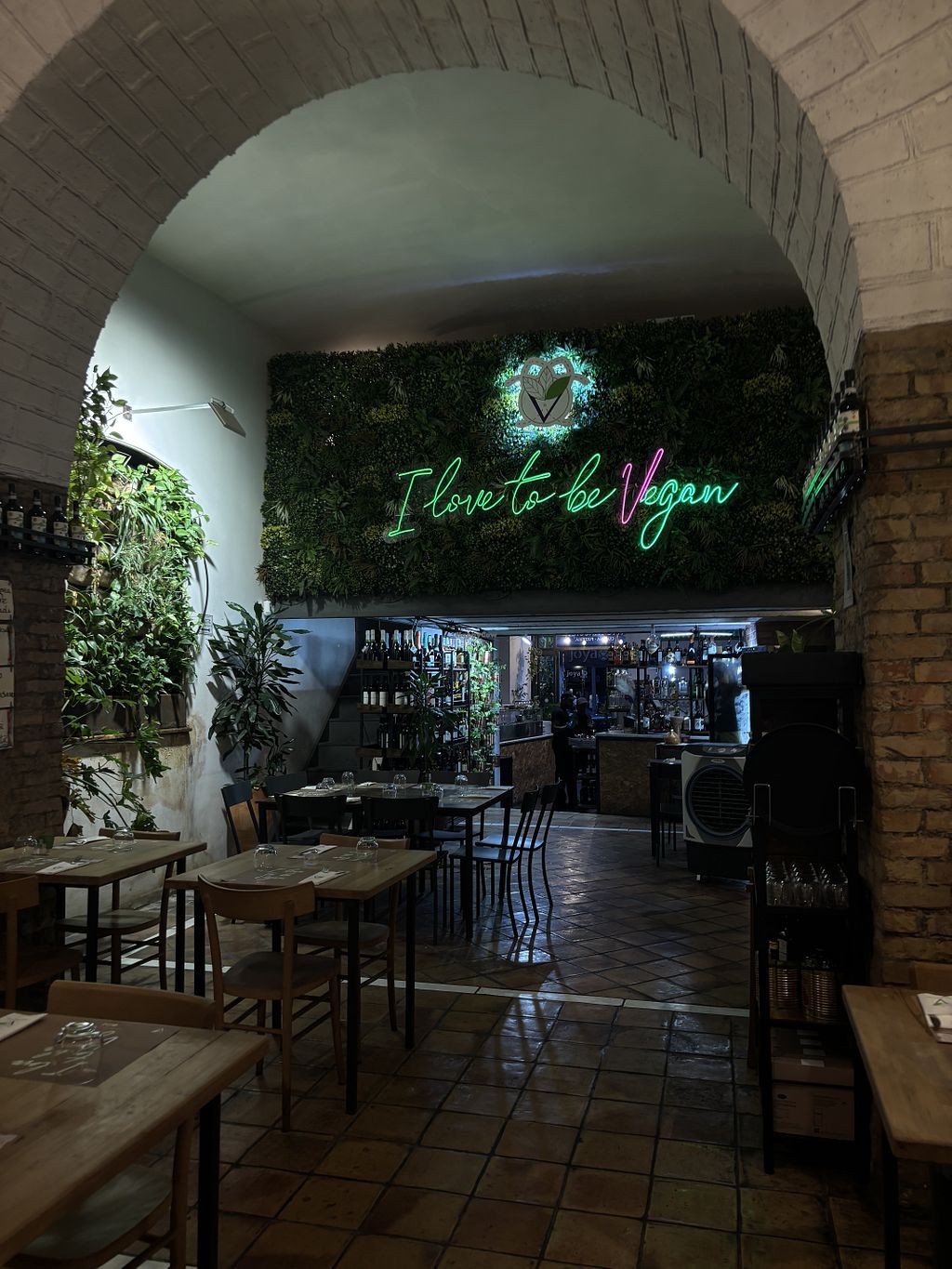 We loved this place and went twice on two consecutive days. They have a huge, mainly vegan menu to choose from, including pasta, pizza, salads, "secondi", and desserts. Everything is vegan, with exception of pizza (which can be requested with vegan mozzarella) and some explicitly labelled "vegetarian" desserts. We ordered a diversity of dishes and everything was delicious. In addition, the personnel is very friendly and the environment lovely. Highly recommended!