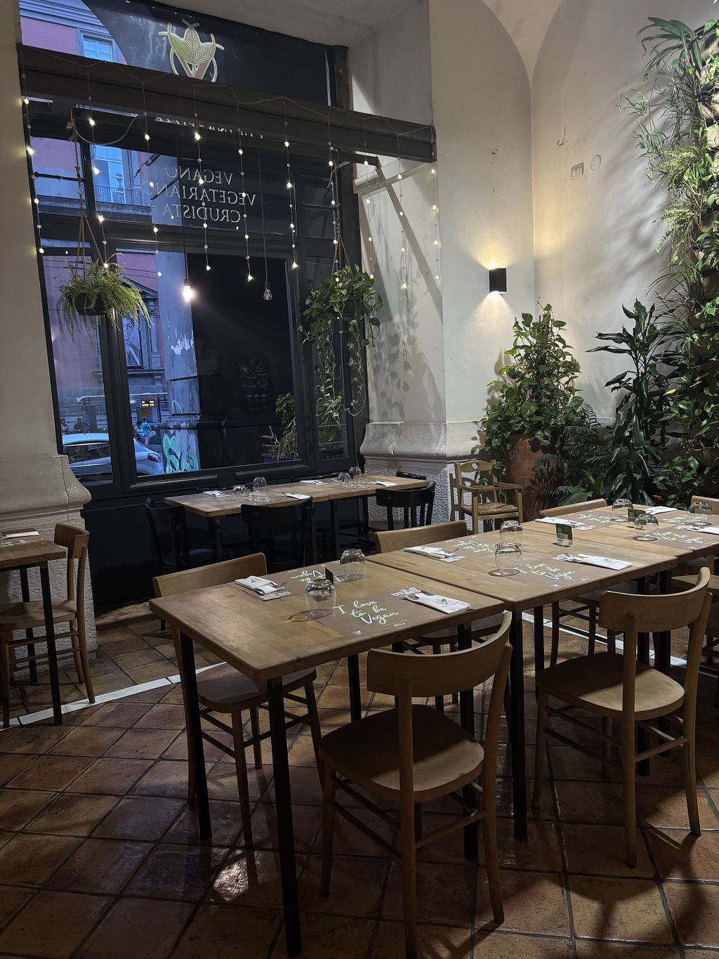 Finalmente sono riuscita a provare questo locale di cui conoscevo l’esistenza, e in questa trasferta estiva ho trovato l’occasione giusta per andarci a pranzo. Locale interno molto bello, ha anche posti all’aperto sotto i portici proprio di fronte al museo archeologico Il menù è interamente vegano, usano formaggi non vegani solo sulle pizze (ma anche le pizze possono essere chieste in versione vegan). In tre abbiamo provato montanarine fritte, ottimo impasto con farine macinate a pietra, e si sente che sono più rustiche, e tre primi, tutti molto gustosi e saporiti (tutti e tre forse un po’ troppo pepati ma per i nostri gusti). Anche i dolci non hanno deluso. Unica nota un po’ stonata, al conto viene aggiunto un 10% in più di servizio, che mi sembra una voce anomala a Napoli (o almeno a me non era ancora capitato…) Ad ogni modo lo consiglio e io stessa ci tornerei per provare altri piatti dell’ampio menu