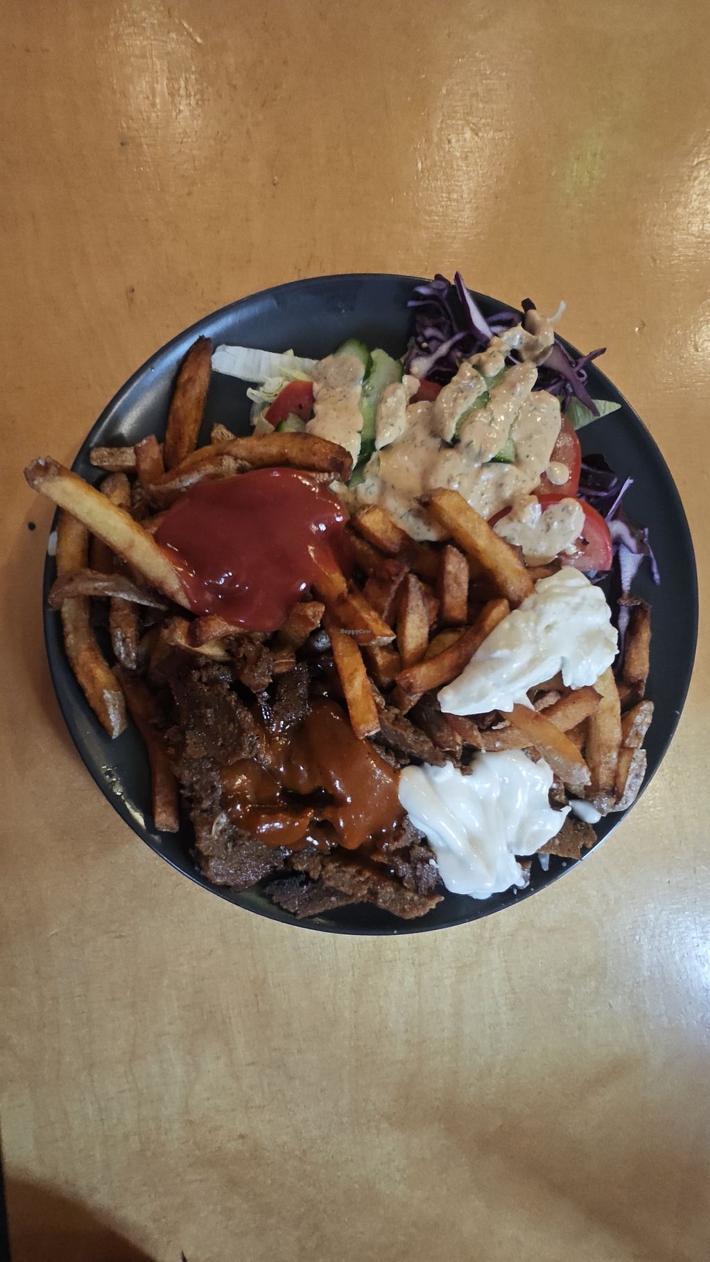 Gyros-Teller mit Soja-Gyros, Pommes, Salat & leckeren Saucen. 👍🏻