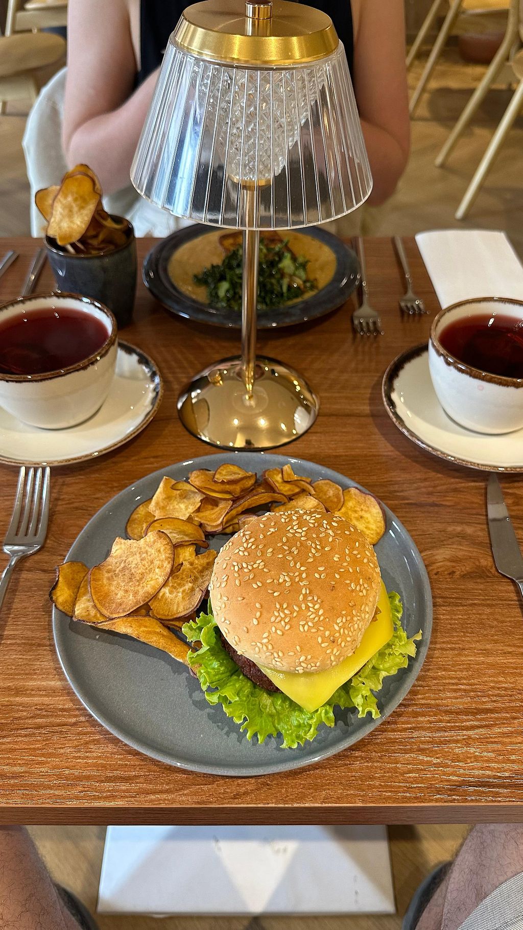 Read moreWe had the Classic Burger, Tofu Mango Caldo Verde, the Camembert with bread, and the Pistachio Croissant.
