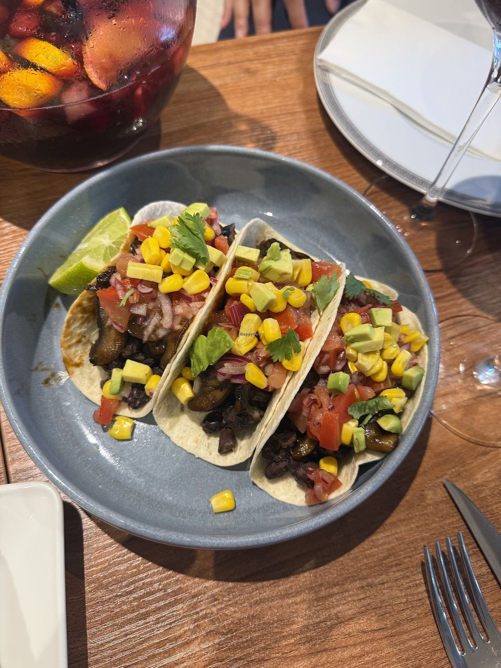 Vrasserie has been the best food I’ve eaten in Porto. I’ve eaten at 5 different vegan restaurants in Porto and this meal was exquisite. And I’m saying that about tacos!! My husband and I started with the Camembert dish and it was delicious! I got the tacos and he ordered the Quinoa avocado salad, sweet potato fries, passion fruit sangria and shared tiramisu for dessert and every bite was delectable.
