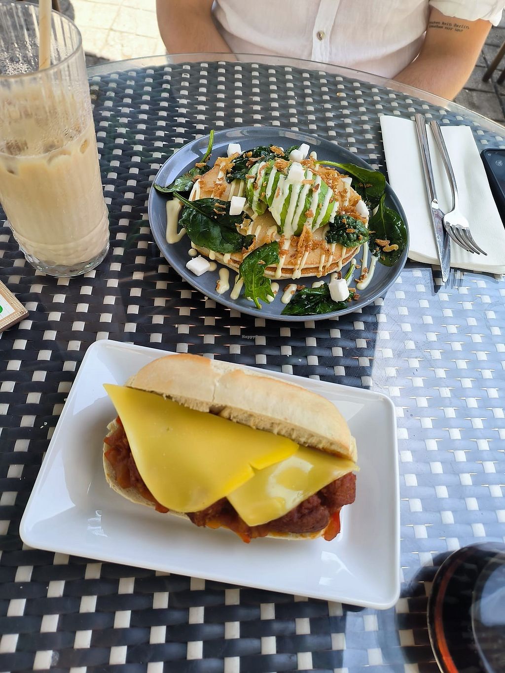 The food, being a cheese plate, meatball sandwich and a savoury pancake, was tasty and filling. My iced flat white had a bit too much milk for my taste.