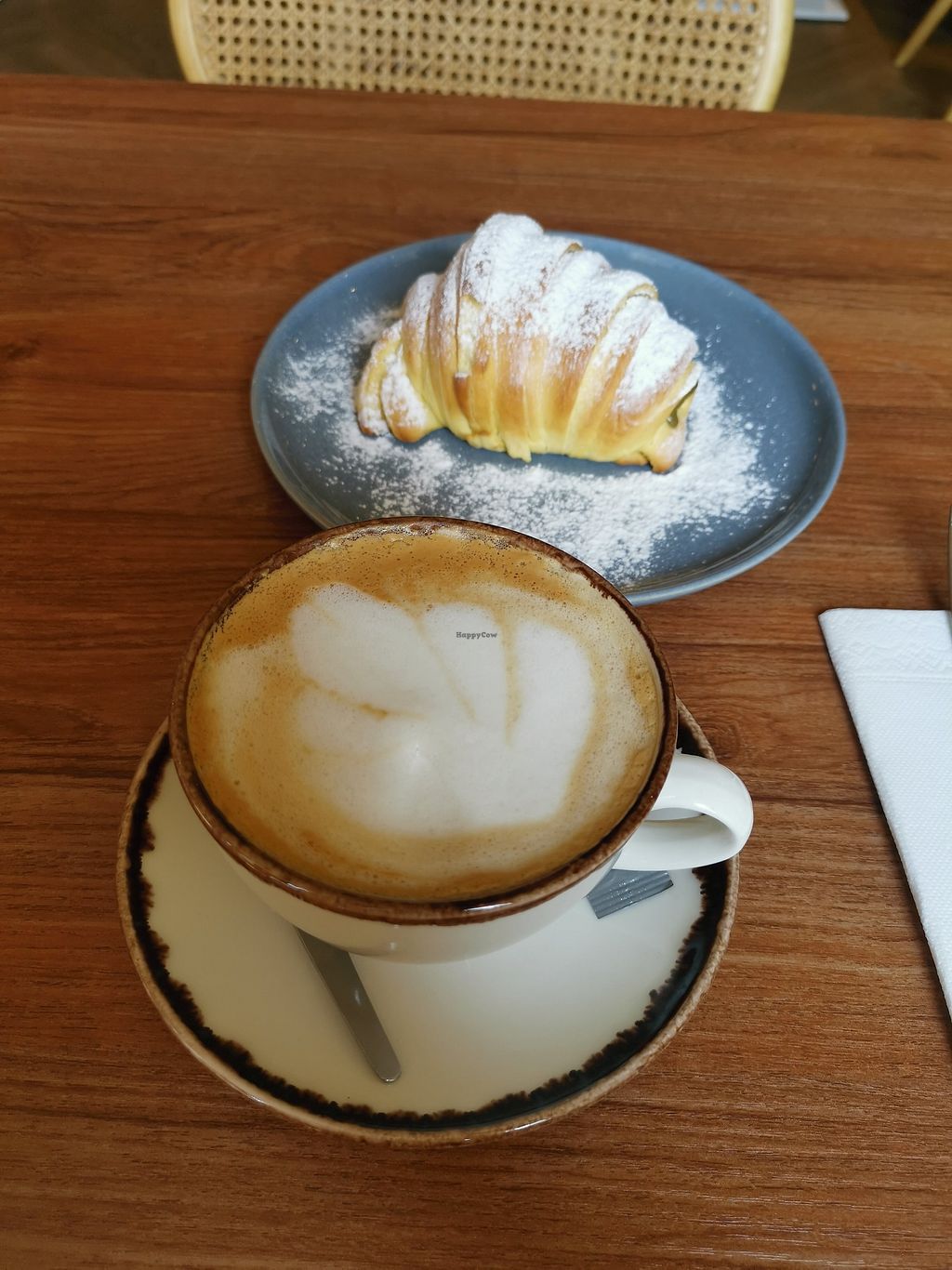 Had the croissant with pistachio filling and the pancakes with red fruit. Unfortunately that was the only food which was available. Beautiful location and bar, enough space.