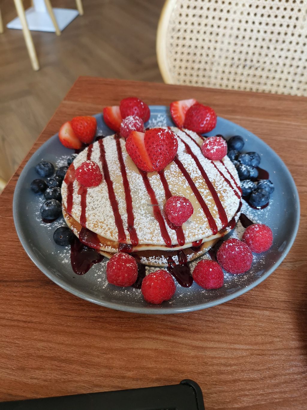 Went back 2 days later for breakfast and again absolutely delicious! Red fruit pancakes were light and fluffy, oat milk lattes were perfect, my husband loved the English Breakfast and fresh watermelon juice, and 2 flavorful cookies finished off our breakfast! The service and server were wonderful. Sit inside and enjoy the ambiance. Love this restaurant!