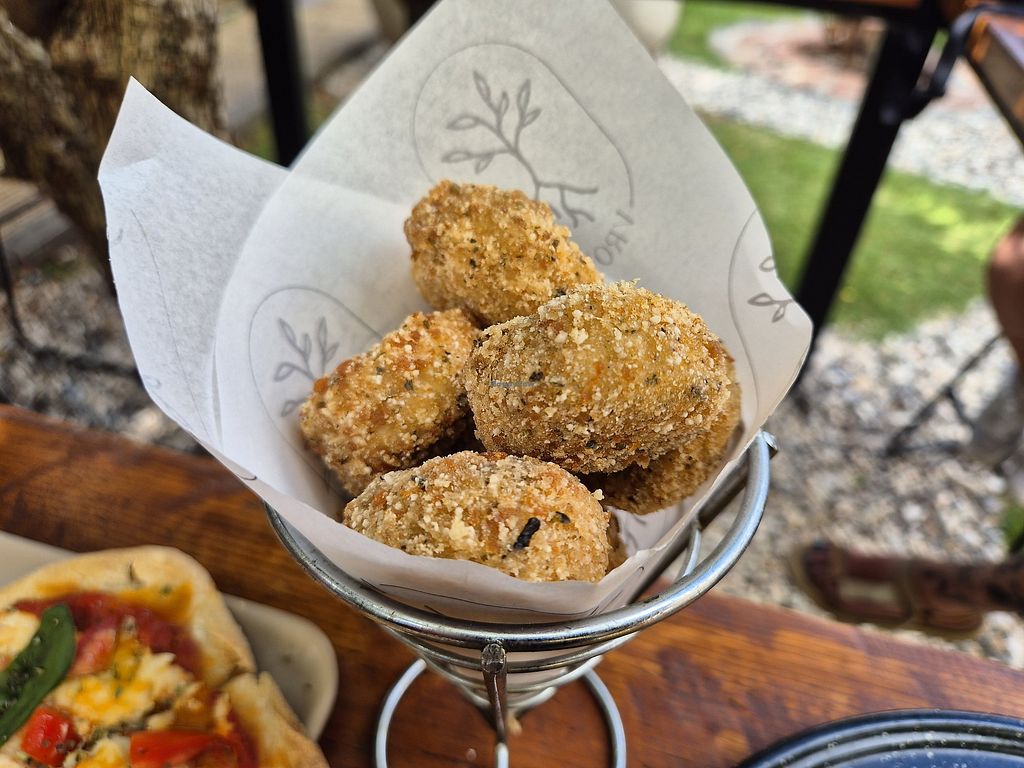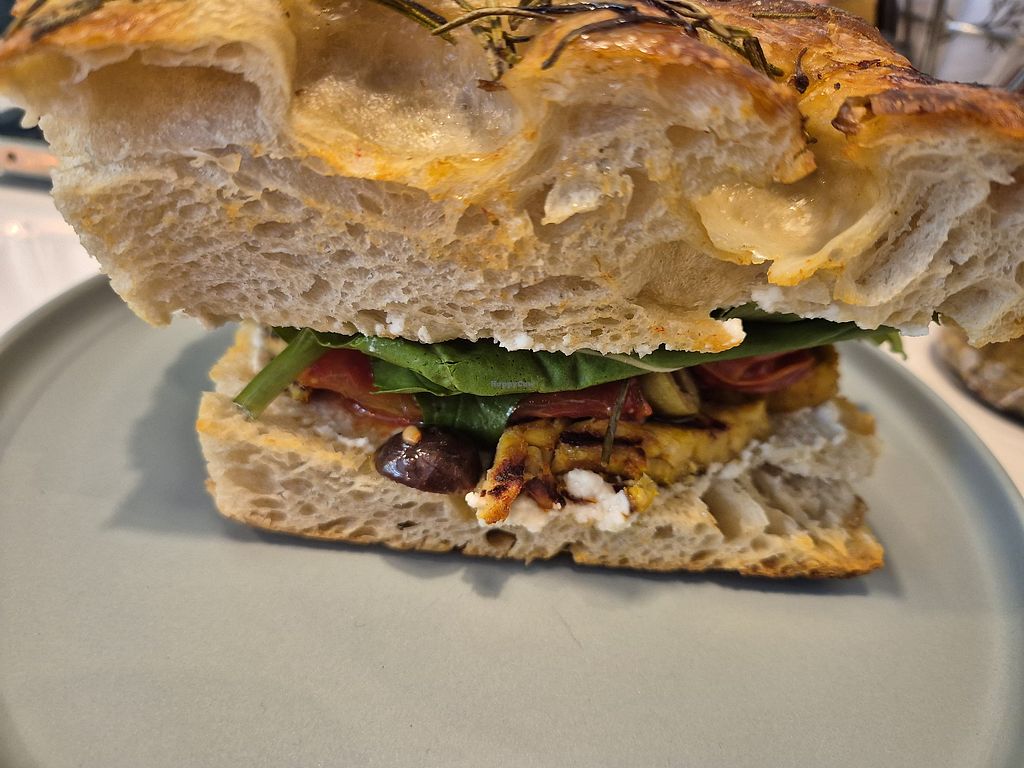 I loved it! The green space outside is just great. I was warmly welcomed and got some hummus and focaccia, as a free dip. I ordered the tofu salad. Fantastic! The tofu is deep-fried, but the salad is quite light. For dessert, I had the brownie, made with beetroot, and two ice cream scoops (it comes with one, but I added one more). The brownie was perfect (you don't notice the beetroot taste at all), but the ice cream (almond based, not very sweet), was not creamy enough for my taste. But it's a great place overall!