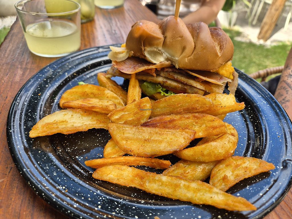 Lovely place with a beautiful patio. We loved all the food we tried, our favourite in Montevideo, so far. Chivito was so tasty and the best vegan cheesecake I have tried!! Staff was lovely and attentive. Not cheap but worth it!