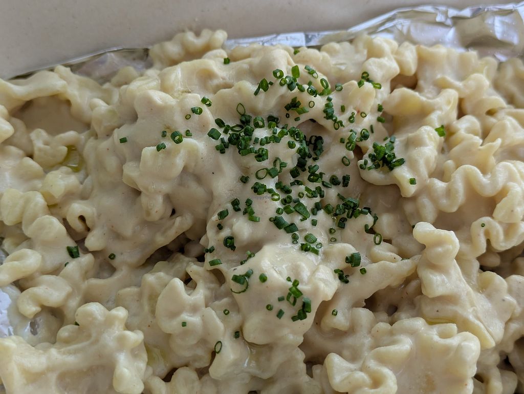 I love that they have everything you need here for a charcuterie board, not just cheese. Including crackers, fruit spreads, mock meat/caviar, and NA wine. The cheese selection was wide and I liked that there was a list with short descriptions of the flavor profile. I got some Vtopian brand as well as some of the other brands. The Vtopian ones were my favorite I LOVE the caramelized onion and black garlic flavors. I also enjoyed the Lavender cheese, it was unusual but still good. I also had their vegan mac n cheese which was AMAZING! The kimchi jam was soooo good on top. I still dream of it. You have gotta visit this place!