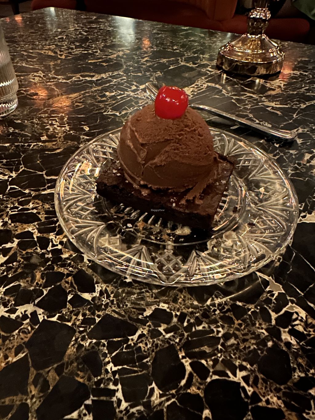 Then the server gave us the dessert menu. I'd been wanting to try the baked Alaska as I'd never had that since going vegan, I was so excited for that. But AGAIN, when it came time to order, the server told us they were out of that too. In fact, they were out of all but two desserts. Why did he not tell us this before?? It makes no sense. We ended up getting the brownie and it was great but I was still kind of disappointed I didn’t get to try two of the dishes I was really looking forward to, and the server didn't really seem to care.