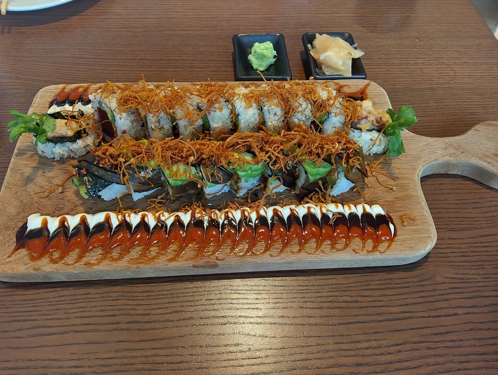 My sushi was really good the basic maki rolls are pretty cheap like 60 baht while the fancier rolls are a bit more but you get a huge portion I almost couldnt finish it all but to be fair I did just come after eating at a vegan spot in china town alot of food