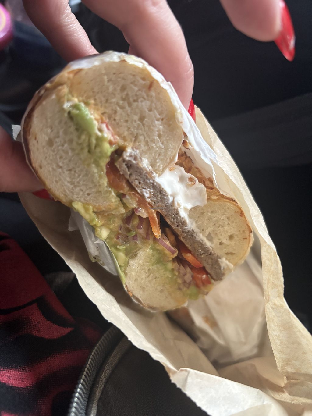 Ordered the spicy vegan breakfast sandwich and it hit the spot. Loaded with good toppings and tasty vegan cream cheese.