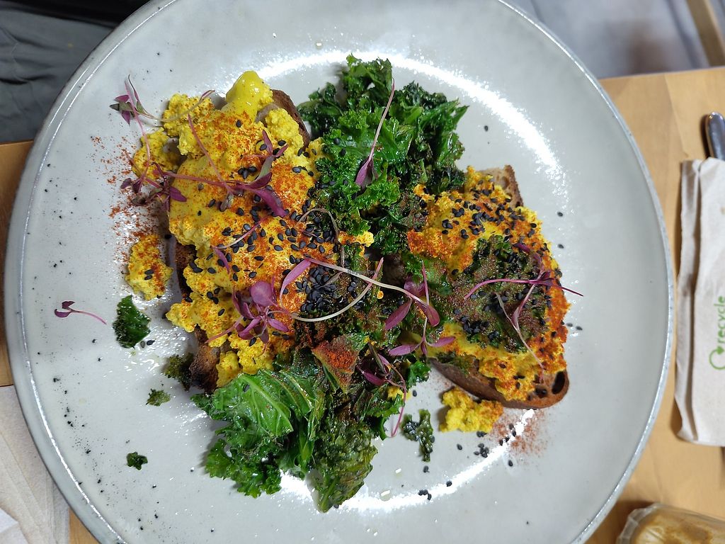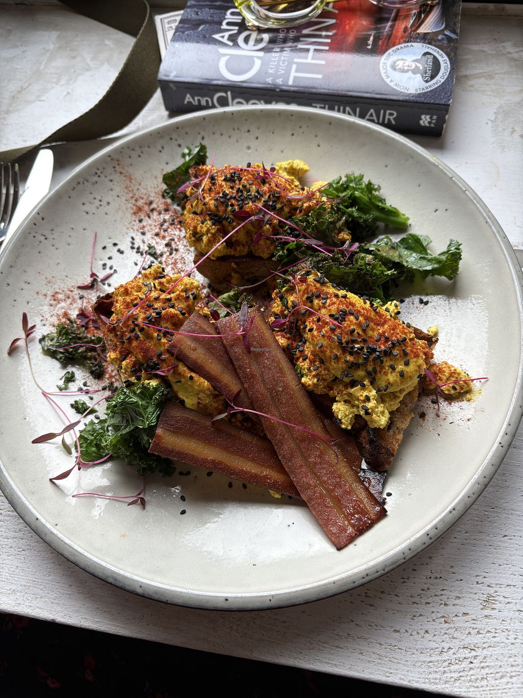 Tofu benedict w cashew hollandaise, La Vie bacon