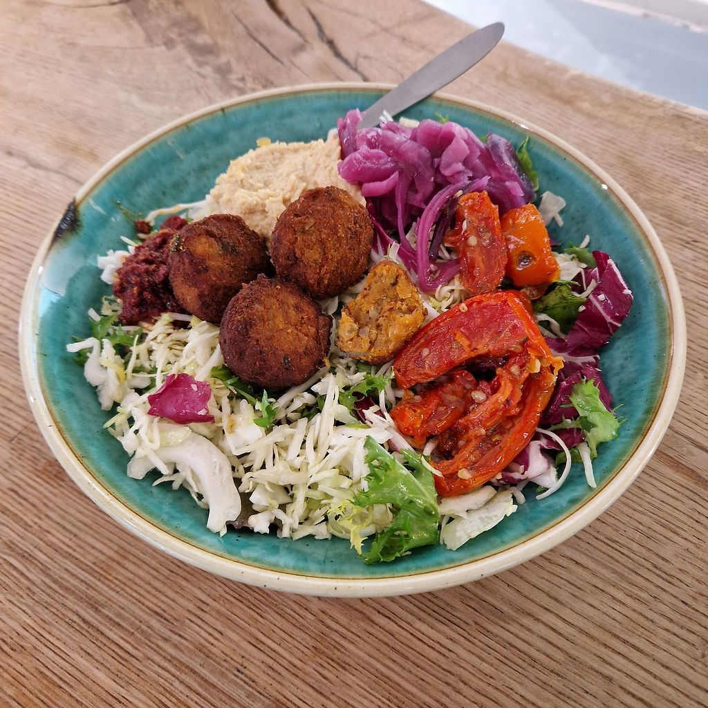 I have been looking for a salad place and was very happy to find this one! Everything is labeled for vegan and they have tofu and falafel!